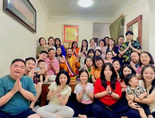 མི་ལོ་ཉེར་གསུམ་གྱི་རིང་ལ་བླ་སློབ་ཀྱི་དམ་ཚིག་རལ་མ་མྱོང་བའི་ཨེ་ཝྃ་རྣལ་འབྱོར་གླིང་གི་ཁྱིམ་གཞི་དང་ཆོས་པ་རྣམ་དག་རྣམས་དང་ཉིན་གསུམ་གྱི་རིང་ལ་གུ་རུ་ཡིད་བཞིན་ནོར་བུ་ལ་རྩེ་གཅིག་ཏུ་གསོལ་བ་བཏབས་ནས་སྨོན་ལམ་རྣམ་དག་བྱས། རྗེས་དྲན་གྱི་པར་བཅས་བླངས། ཨེ་མ་ཧོ།། སྐྱེ་ནས་སྐྱེ་བ་ཀུན་ཏུ་མཛའ་མཐུན་ངང་།། བསྟན་དང་འགྲོ་བར་ཕན་བདེའི་དོན་སྒྲུབ་ནས།། ནམ་མཁའ་མ་ཞིག་འཁོར་བ་མ་སྟོང་བར།། ཕན་དང་བདེ་བའི་ཕྲིན་ལས་ཀུན་ཁྱབ་ཤོག། ཤྲཱིཿ གླིང་པས་མཱ་ལེ་ཤ་ཡ་ནས།།